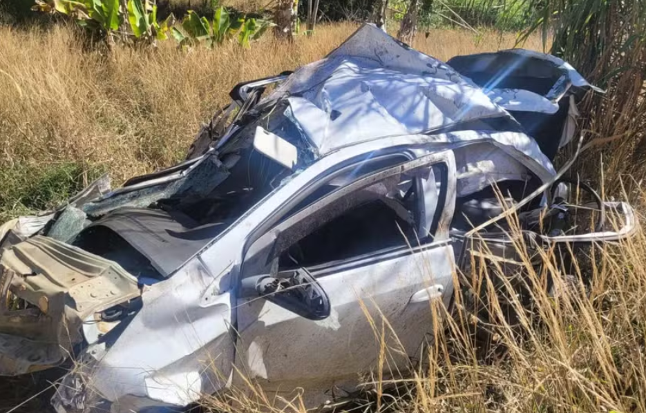 Acidente aconteceu na madrugada da segunda-feira (4). Segundo a Polícia Civil, o corpo do casal foi encontrado fora do veículo por causa do impacto da batida.
