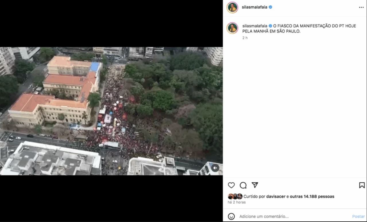 – Fiasco da manifestação do PT hoje pela manhã em São Paulo – escreveu o pastor.